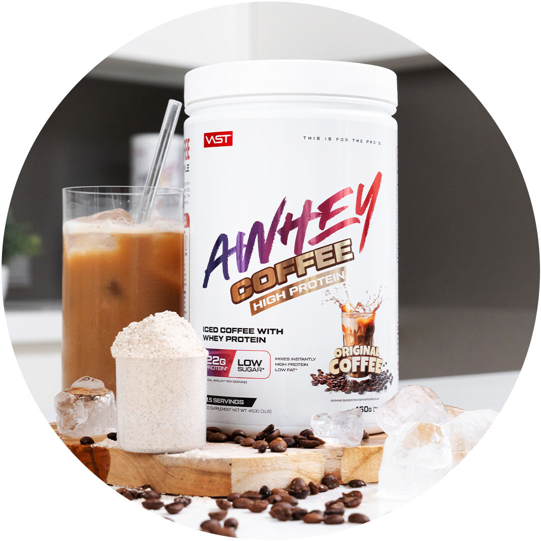 AWHEY Coffee basiert auf echtem Kaffee – kein künstliches Aroma, kein Schnickschnack. Er ist sofort löslich, ob im Shaker oder direkt im Glas, und schmeckt mit Wasser, Milch oder Pflanzendrink einfach unglaublich lecker. Natürlich gluten- und sojafrei. Einrühren. Trinken. Genießen.
