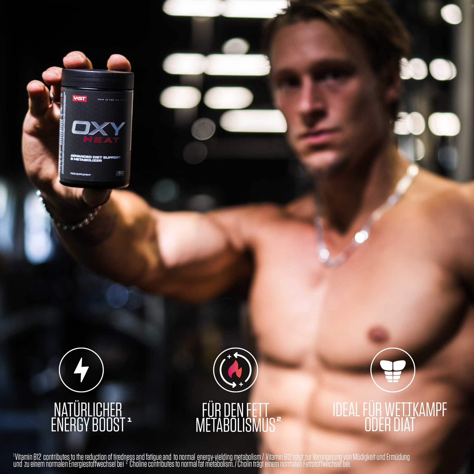 OXY HEAT setzt einen neuen Standard für Diet Supplements, speziell entwickelt für Athleten in Wettkampfphasen. Es liefert eine cleane Zusammensetzung aus bekannten und patentierten Inhaltsstoffe, die nachweislich auf natürliche Weise den körpereigenen Fettstoffwechsel und die Ausdauer unterstützen ¹ ². OXY HEAT ist die ideale Ergänzung für deine Diät, um dir dabei zu helfen, deine Ziele zu erreichen. Optimal für einen Push vor deinem Cardio- oder Ausdauertraining, um dich zusätzlich ins Schwitzen zu bringen und Kalorien zu verbrennen.